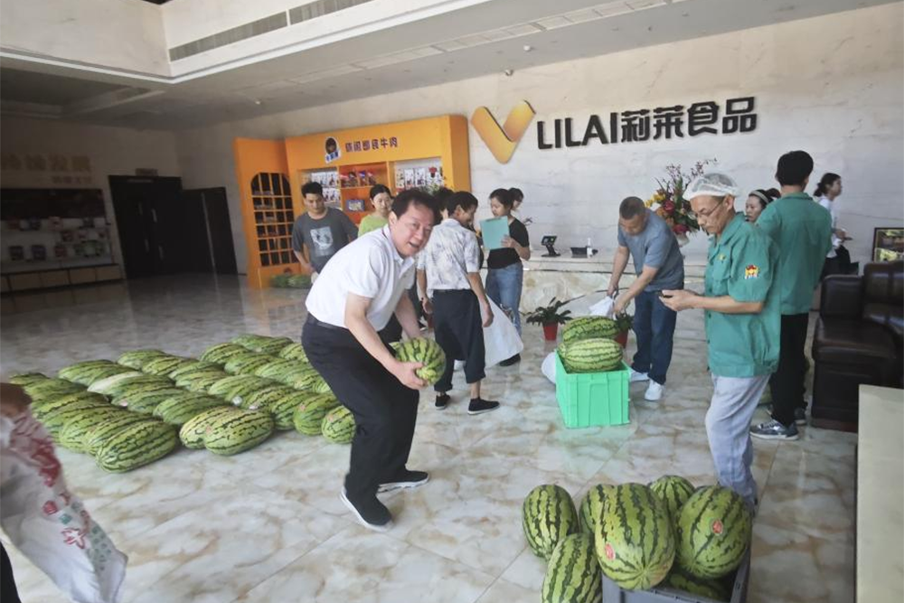七月流火,酷暑難耐。2024年7月22日,重慶莉萊食品有限公司黨政工聯系公司合作伙伴漢邦物流采購了一批防暑降溫物資,為一線職工送去清涼解暑的甘肅硒砂西瓜,表達了關心與慰問。