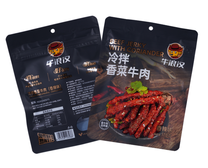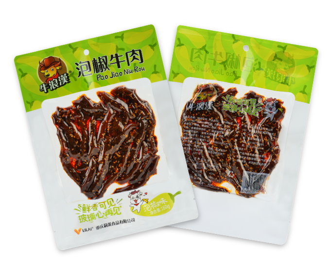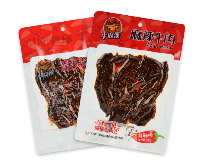 產品中心 安格斯薄脆系列 牛肉干系列 燈影牛肉絲系列 油制牛肉系列 手撕/風干牛肉系列 醬鹵牛肉系列 顆顆豆腐香干系列 預制菜系列 文旅系列 隨身袋系列 禮袋系列 禮盒系列 安格斯薄脆系列 牛肉干系列 燈影牛肉絲系列 油制牛肉系列 手撕/風干牛肉系列 醬鹵牛肉系列 顆顆豆腐香干系列 預制菜系列 文旅系列 隨身袋系列 禮袋系列 禮盒系列 Beef in oil series 油制牛肉系列 牛浪漢冷拌花生牛肉(香辣味) 規格:45克/58克/80克/170克產品特點:嚴選草原牛肉,搭配豫花大花生。酥脆與勁道,雙重口感在齒間碰撞;花生香與牛肉香,雙重風味在舌尖共舞。佐以天然香辛料,老師傅匠心秘制,濃郁的麻辣鮮香,每一口都是大滿足。獨立小包裝鎖住鮮香,方便攜帶。即拆即食,隨時隨地樂享美味更自在。 冷拌香菜牛肉(香辣味) 規格:170克產品特點:嚴選草原牛肉,搭配清新香菜。濃郁肉香與香菜獨特清香,在舌尖交織共舞,雙重風味層層綻放。佐以天然香辛料,老師傅匠心秘制,地道川渝味創新迭代,一口入魂,欲罷不能。獨立小包裝鎖住鮮香,便攜無憂。即拆即食,隨時隨地,美味隨心暢享。 冷拌香菜牛肉(香辣味) 規格:170克產品特點:嚴選草原牛肉,搭配清新香菜。濃郁肉香與香菜獨特清香,在舌尖交織共舞,雙重風味層層綻放。佐以天然香辛料,老師傅匠心秘制,地道川渝味創新迭代,一口入魂,欲罷不能。獨立小包裝鎖住鮮香,便攜無憂。即拆即食,隨時隨地,美味隨心暢享。 牛浪漢麻辣牛肉 規格:50克/60克/120克/160克/200克產品特點:嚴選草原牛肉,甄選天然香辛料,傳承秘制配方,花椒辣椒精準配比。鹵香透骨,肉質緊實彈牙,麻辣如烈火灼喉,鮮香似浪潮拍舌,嚼勁十足帶感,一口上頭,停不下來的江湖癮!規格齊全,一人獨颯眾歡皆宜。便攜包裝,開袋即引味蕾風暴;佐酒追劇,瞬間點燃酣暢江湖。 牛浪漢泡椒牛肉 規格:60克/160克產品特點:嚴選草原牛肉,甄選天然香辛料,傳承秘制配方,泡椒酸辣賦能。濃香牛肉裹挾泡椒的鮮爽,酸辣激蕩,椒香縈繞,緊實肉質在齒間爆汁彈跳,開胃解膩,一口喚醒倦怠味蕾!多規格滿足饞癮需求。便攜包裝,酸辣隨時引爆;佐飯下酒,酸辣暴擊酣暢淋漓。 牛浪漢泡椒牛肉 規格:60克/160克產品特點:嚴選草原牛肉,甄選天然香辛料,傳承秘制配方,泡椒酸辣賦能。濃香牛肉裹挾泡椒的鮮爽,酸辣激蕩,椒香縈繞,緊實肉質在齒間爆汁彈跳,開胃解膩,一口喚醒倦怠味蕾!多規格滿足饞癮需求。便攜包裝,酸辣隨時引爆;佐飯下酒,酸辣暴擊酣暢淋漓。 牛浪漢藤椒牛肉 規格:50克/60克產品特點:嚴選草原牛肉,甄選天然香辛料,傳承秘制配方,藤椒鮮麻點睛。肉質緊實彈韌,鹵香打底,麻而不嗆,鮮香層層遞進,一口墜入川渝秘境,舌尖跳舞,欲罷不能!精致包裝鎖住鮮麻。開袋即引味蕾顫栗;獨享眾樂,麻香上頭不停箸。 牛浪漢孜然牛肉 規格:50克/60克產品特點:嚴選草原牛肉,甄選天然香辛料,傳承秘制配方,優質孜然點睛。肉質緊實耐嚼,纖維絲絲分明,炙烤般的孜然香撲鼻迸發,裹挾鹵香在齒間熱烈起舞,越嚼越香,異域風情欲罷不能。多規格便攜易帶。密封鎖住曠野香氣;即拆即食,每一口都是享受。 牛浪漢孜然牛肉 規格:50克/60克產品特點:嚴選草原牛肉,甄選天然香辛料,傳承秘制配方,優質孜然點睛。肉質緊實耐嚼,纖維絲絲分明,炙烤般的孜然香撲鼻迸發,裹挾鹵香在齒間熱烈起舞,越嚼越香,異域風情欲罷不能。多規格便攜易帶。密封鎖住曠野香氣;即拆即食,每一口都是享受。